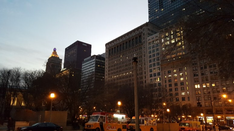 시카고는 건축의 도시라는 명성답게 건물들이 정말 멋지고 아름다웠다. 기차 시간 때문에 밀레니엄 공원을 전력으로 질주하여 찍고 다시 기차를 탔다. 캐리어 끌고서 걸어서 다녀와서 그런지 시간이 생각보다 더 많이 걸렸다. 가려던 시카고 피자집은 사람이 너무 많아서 기다리거나 밀레니엄 공원을 보고 오거나 둘중에 하나를 선택해야 했다. 밀레니엄 공원을 보는 것을 선택했기에 엄청 기대했던 시카고 피자는 먹지 못했다. 대신 기차에서 파는 피자를 시켜 먹었다.