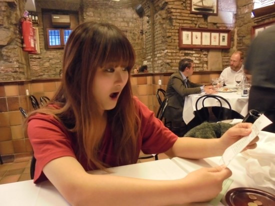 음식은 매우매우 맛있었지만 타파스 6개를 시킨 후 받은 영수증은