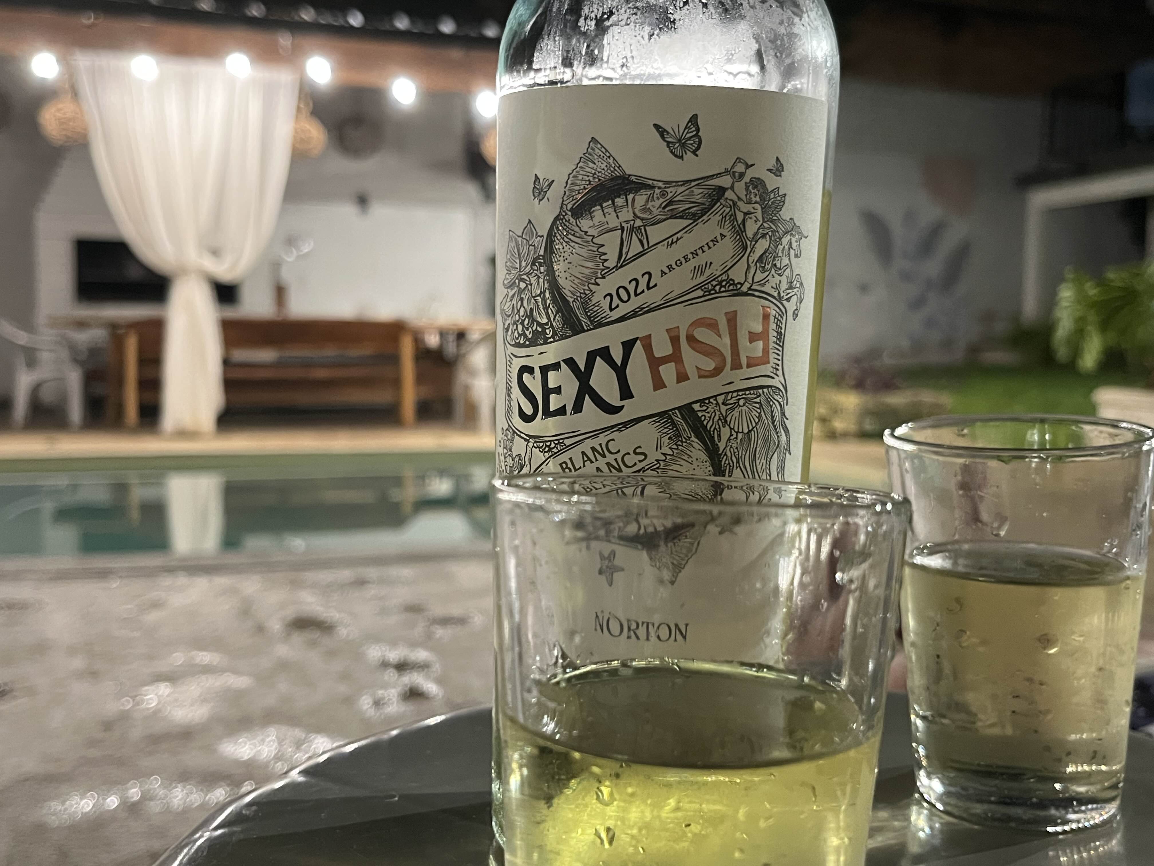 소화할 겸 수영장의 선배드에 누워 친구와 수다 떨며 와인을 마시기로 했다. 지나가는 "알레"도 불러서 같이 이런 저런 이야기 하면서 와인 한병을 비웠다.