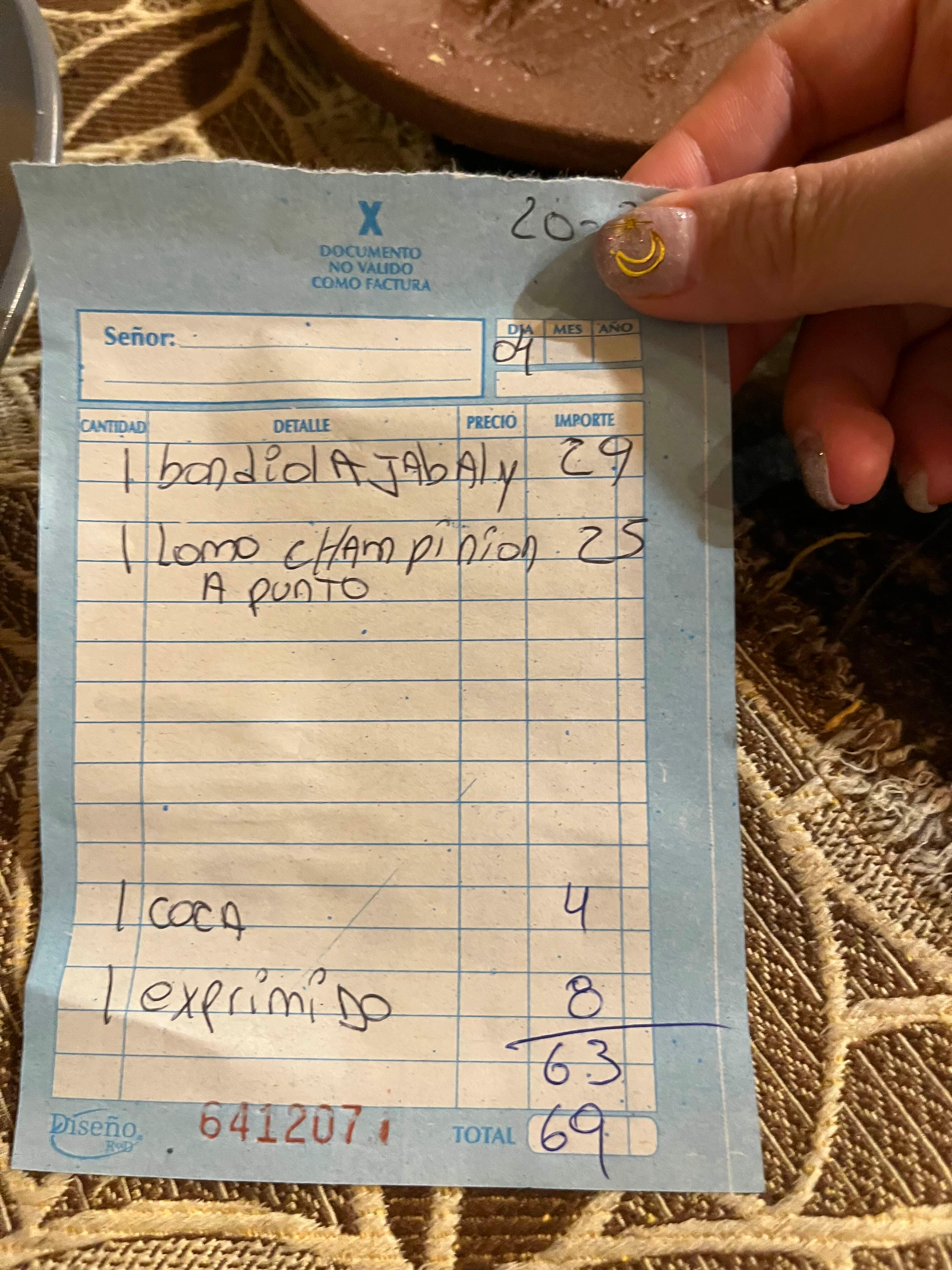 고기 스테이크 2개와 음료 2개, 그리고 팁까지 해서 총 69,000페소를 지불했다. 현금으로 하면 10% 할인해줘서 할인한 금액만큼 팁을 준다고 생각하면 되서 편했다. 부에노스 아이레스에 비하면 그렇게 비싼 편은 아니였던 금액이였음.