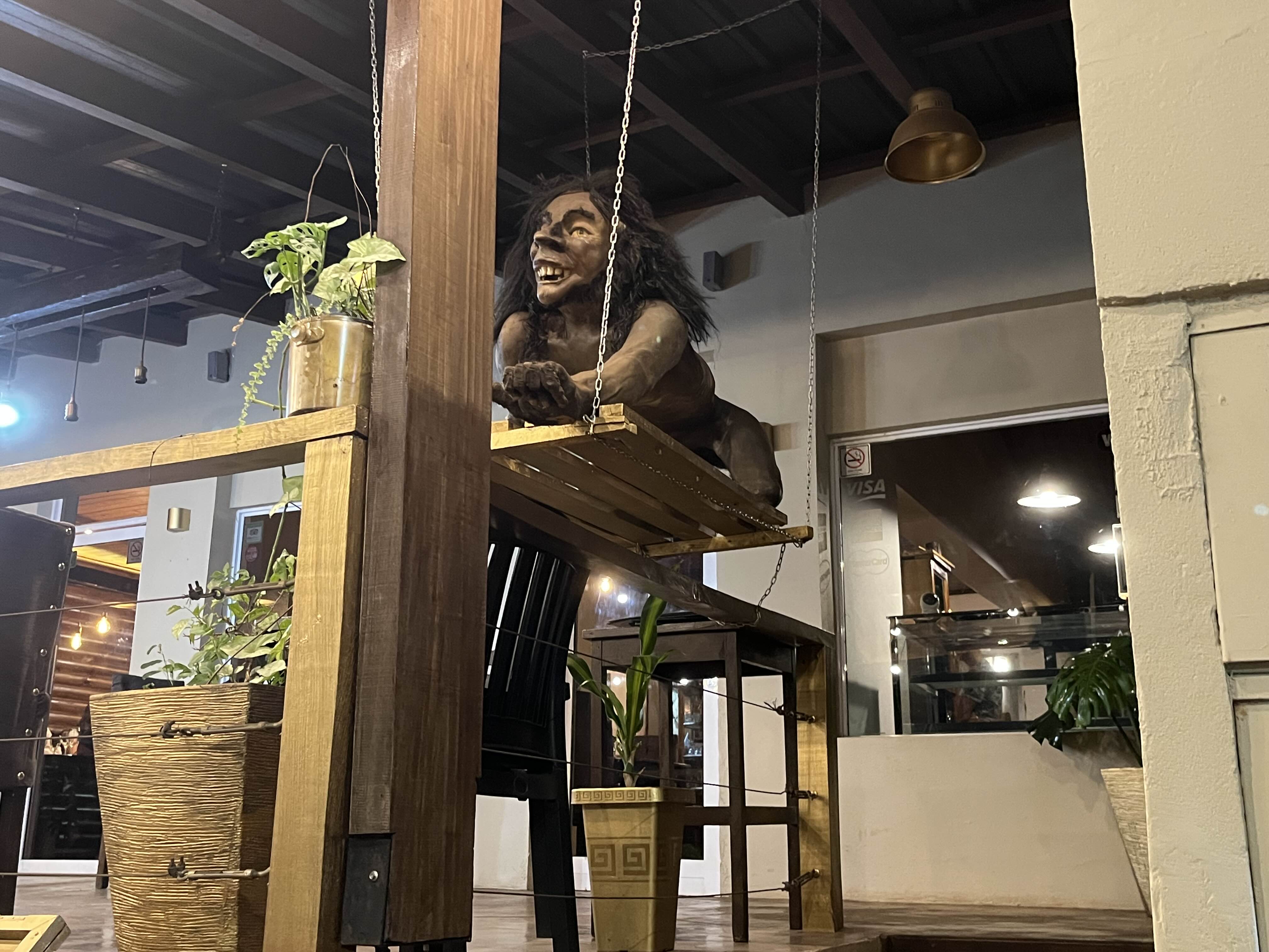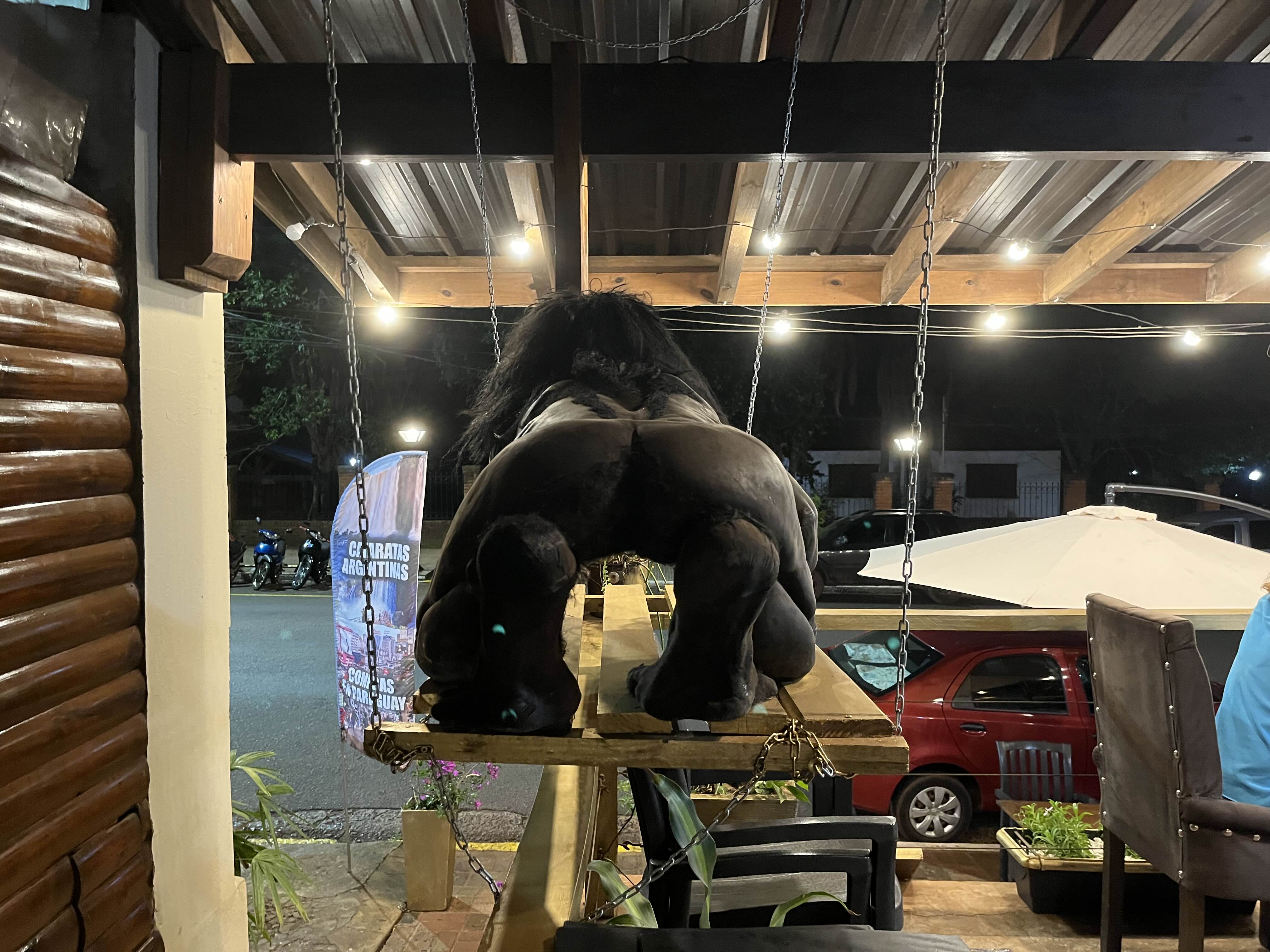 신기한 장식이 있는 레스토랑. 이과수에 살던 원주민의 모습이 아닌가 싶다. 진짜 사람으로 만든 건 아닐테지만 너무 사실적이여서 밤에 마주치면 소름끼친다. 결국 우린 여기 레스토랑에 들어갔다. 인터넷이 없어서 구글 리뷰를 보진 못했지만 선택의 이유는 일단 할머니들이 여유롭게 와인을 즐기는 모습을 보았다. 보통 할머니, 할아버지들이 있다면 가성비가 좋은 곳일 확률이 높다. 노인들은 엄한데 돈을 안쓴다는 나만의 판단 기준이다.